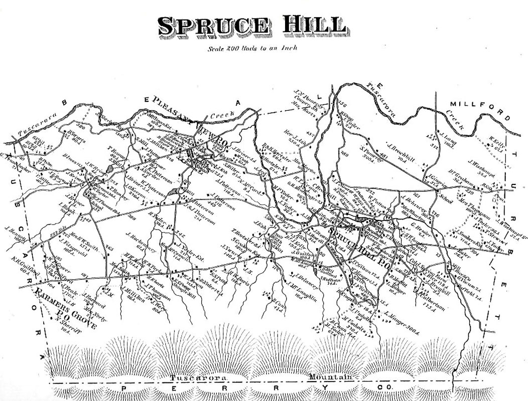 | 1877 Map of Spruce Hill Township (295K) - This map has the names of property owners of that period. |