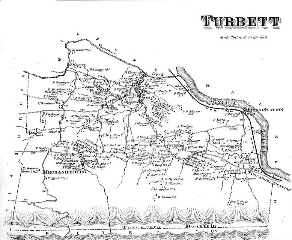 | 1877 Map of Turbett Township (240K) - This map has the names of property owners of that period. |
