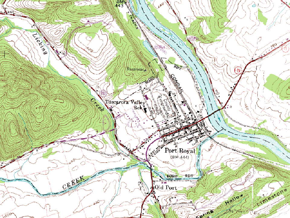 | 1985 Topographic Map of Port Royal (326K) - This map shows the topography around Port Royal. (Unsure when the map was last updated, it shows the TV Elementary School but not the development of Ninth Street.) |