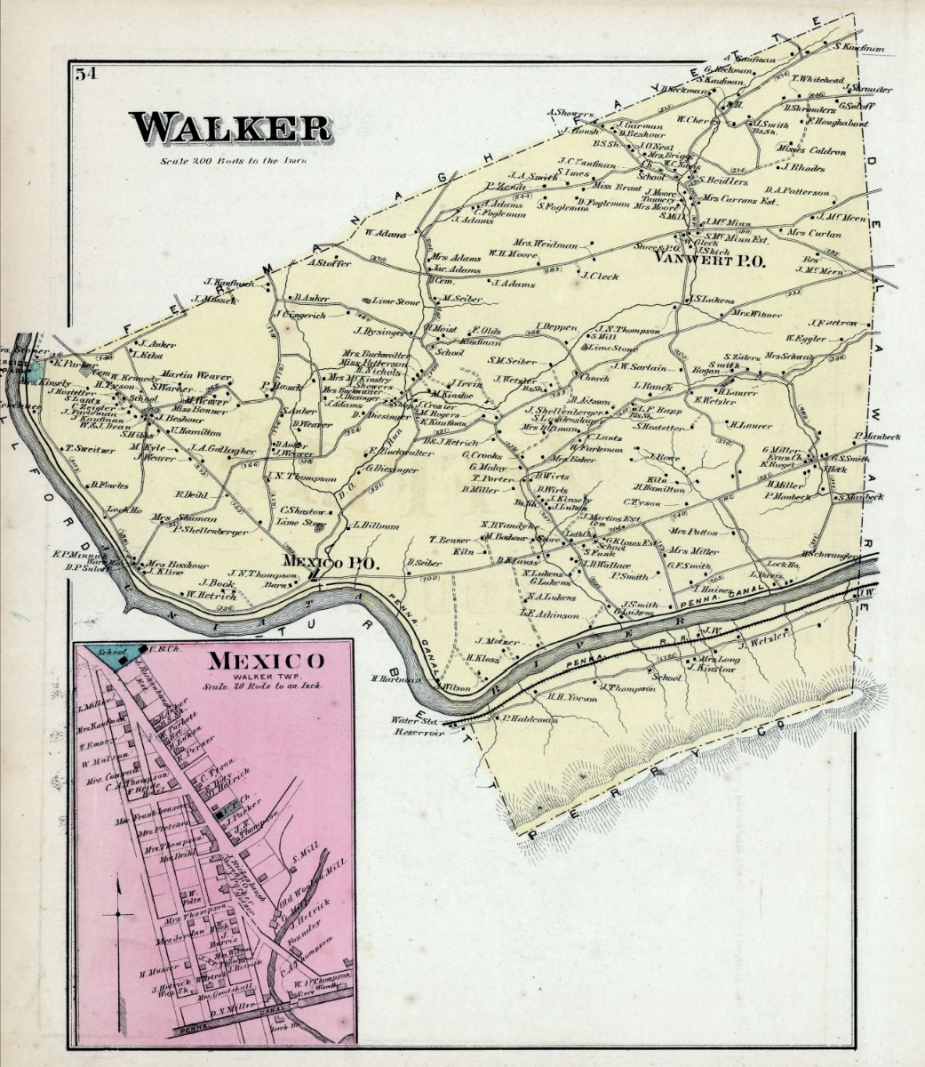 | 1877 Map of Walker Township (528K) - This map shows property owners in 1877 and an insert map of the village of Mexico. |